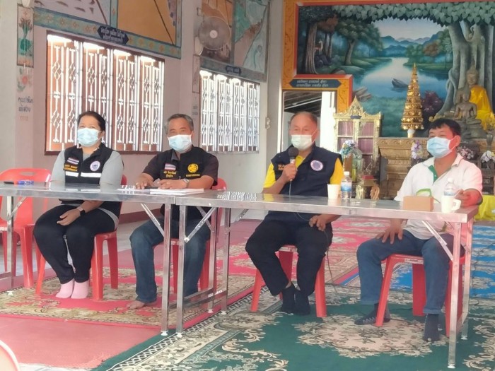 นางกาญจนา พนมเวช หัวหน้าสำนักปลัดเทศบาล กำนันโสรัตยา บัวชุม และผู้ใหญ่บ้านธวัช จิตตาทิพย์ ลงพื้นที่ประชาคมร่วมกับผู้นำชุมชน